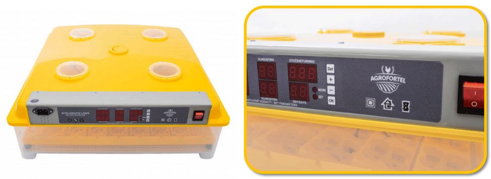 - Intuitivní a přesné digitální ovládání - Pro přehlednost je líheň vybavena několika digitálními displeji, které zobrazují nastavenou a skutečnou teplotu a vlhkost, počítadlo dnů nebo zbývající čas do dalšího otočení vajíček.
