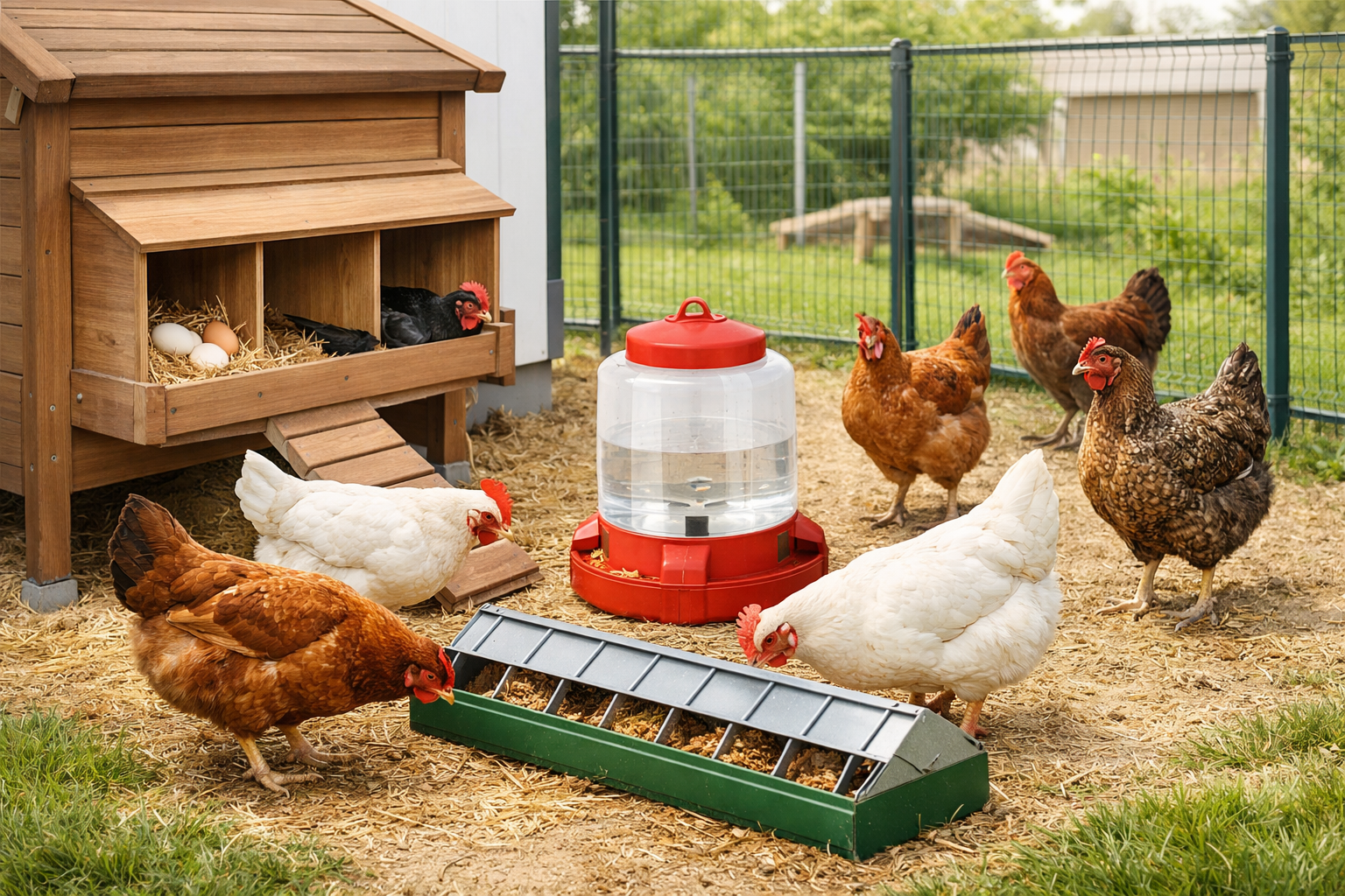Mezi základ patří vhodný kurník, krmítko, napáječka, místo pro snášku a podle způsobu chovu také výběh nebo ochranné prvky.
