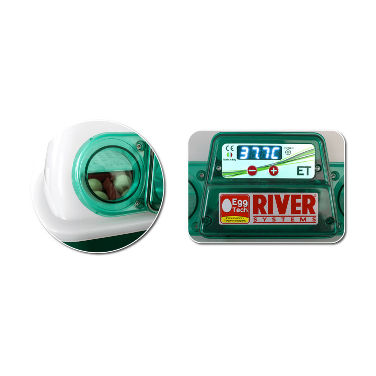 - Automatické otáčení vajec – automatické naklánění držáků vajec - bez nutnosti zvedání víka a ztráty tepla. Vejce se otočí každé dvě hodiny.
