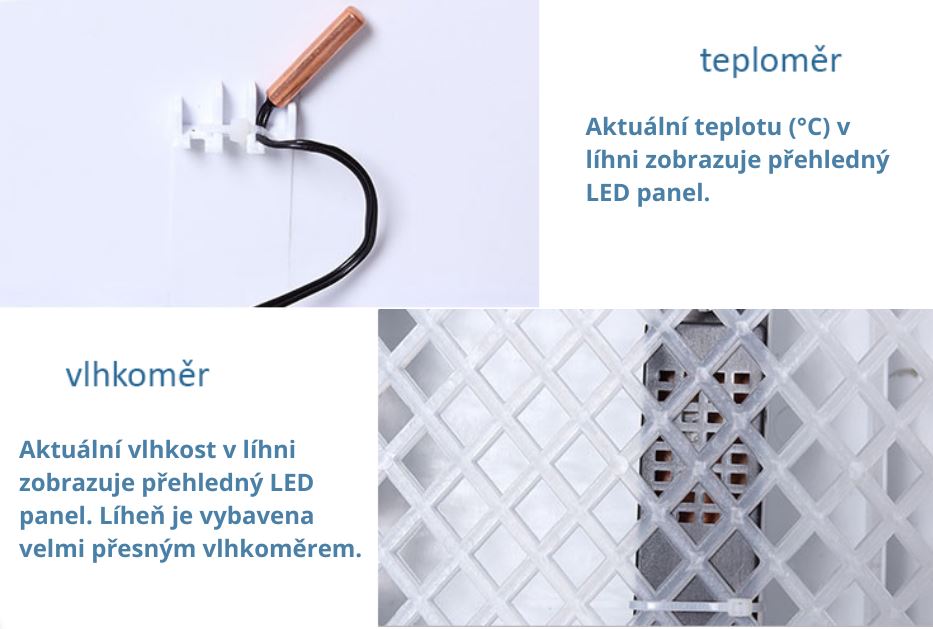 Líheň má digitální displej na rozdíl od jiných líhní ve °C. Je možné nastavit teplotu od 20° C do 40° C po 0,1° C krocích stiskem tlačítek (+) a (-).