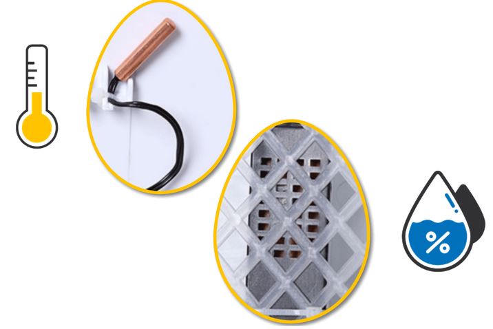 Digitální líheň WQ-63 je vybavena vysoce přesnými senzory teploty a vlhkosti. LED panel ukazuje aktuální hodnoty pro maximální kontrolu nad líhnutím.