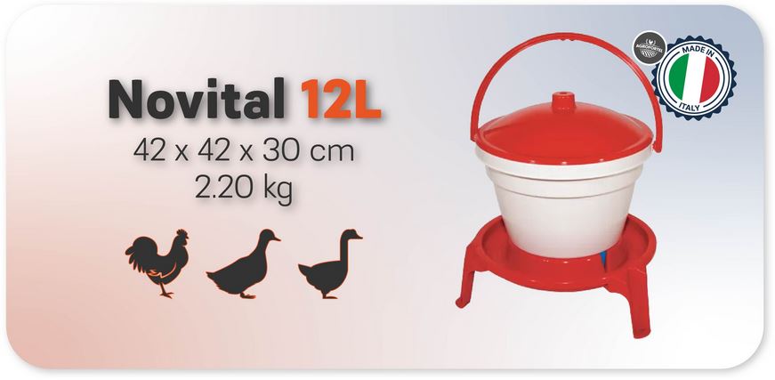 Praktická a stabilní napáječka s objemem 12 litrů. Ideální řešení pro pohodlné napájení drůbeže. Díky praktickým nožičkám je voda chráněna před znečištěním z podestýlky a je lépe přístupná i pro větší drůbež.
