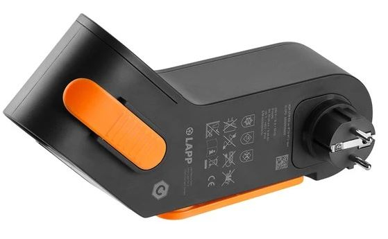 - Nabíječka LAPP pro jednoduché, mobilní nabíjení přes standardní zásuvky (bezpečnostní zásuvka CEE 7/3, typ E/F) je ideální na cesty nebo do garáže doma.