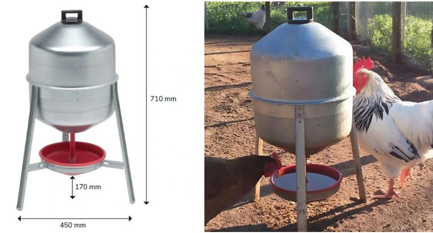 - Rozměr napáječky: Ø 450 x V 720 mm, miska V 170 mm.
