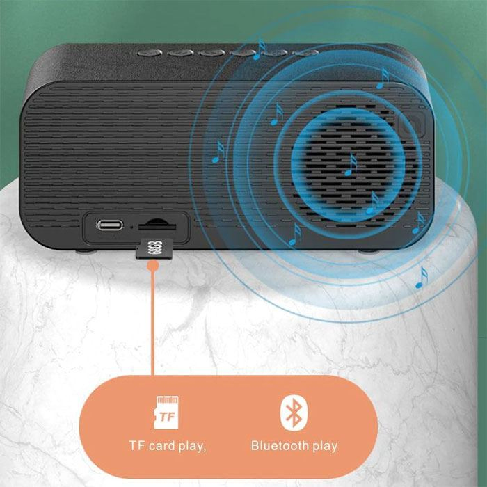 Bluetooth reproduktor s digitálními hodinami a budíkem.