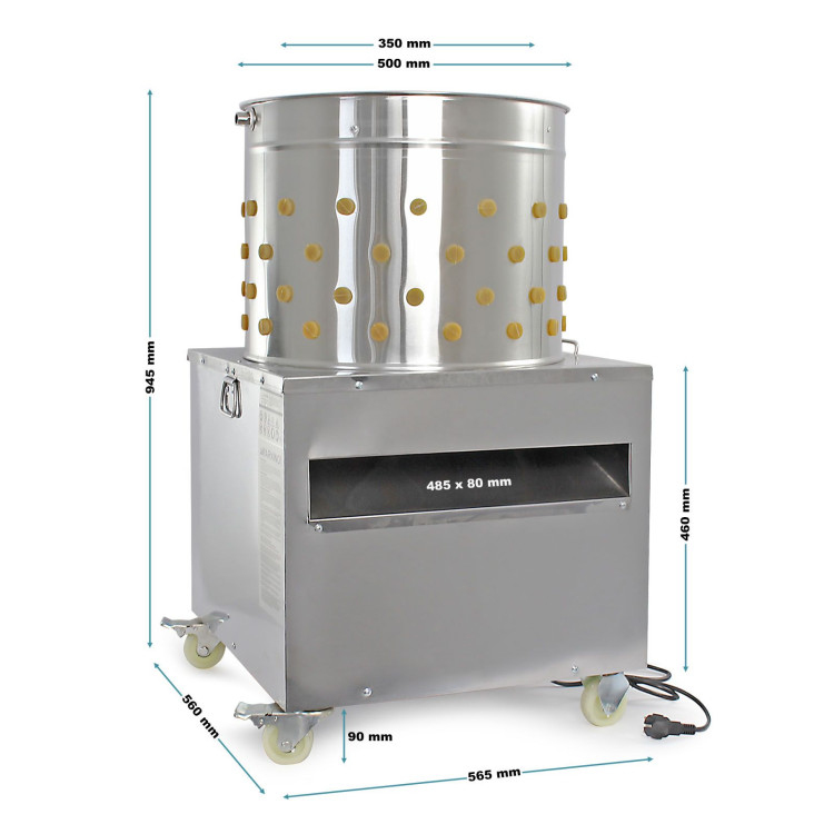 Naše bubnová škubačka je vybavena silným 1500 W motorem, který dokáže zvládnout i ty největší kusy drůbeže až do váhy 8 kg. Díky 130 kvalitním, gumovým a vyměnitelným škubacím prstům je zaručen dokonalý výsledek bez nutnosti dalšího ošetření. Vyrobena je z odolné nerezové oceli, což zaručuje její dlouhou životnost a snadnou údržbu.