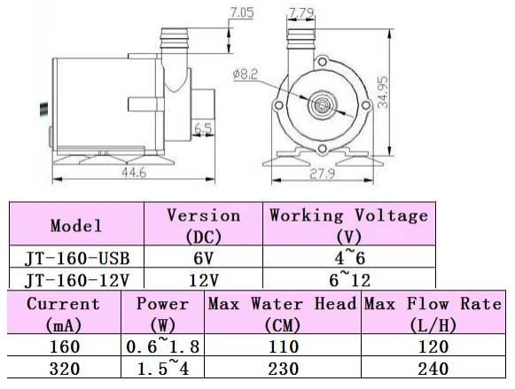 Čerpadlo JT-160A 5VDC, max. 120l/hod