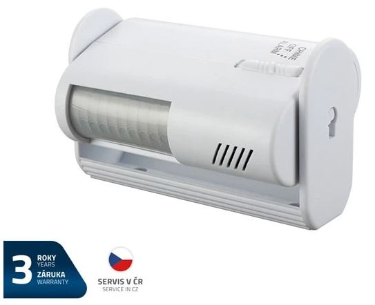 Tento přístroj je vybaven vysoce citlivým čidlem, integrovaným obvodem a technologií SMT. Nabízí výhodnou kombinaci bezpečné a praktické služby. Široký rozsah detekce umožňuje zaznamenat pohyb osoby a signalizovat jej zvonkem „dingdong“ nebo poplašným signálem. Tímto způsobem upozorní na vstup nebo pohyb osoby v hlídaném prostoru signálem „dingdong (2x) “ nebo alarmem. Přístroj nabízí bezpečnost doma i na cestách, jeho použití je široké a jeho instalace je snadná.