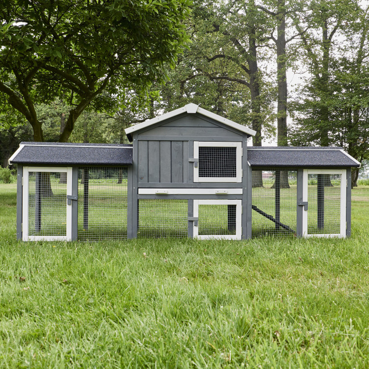je luxusní dvoupatrovýpříbytek pro králíky, morčata, nebo křečky. Skládá se ze tří částí - domečku a 2 bočních výběhů. Váš mazlíček si tuto králíkárnu zkrátka zamiluje. Montáž je velmi snadná díky dodávanému obrázkovému návodu, zvládne ji opravdu každý.
