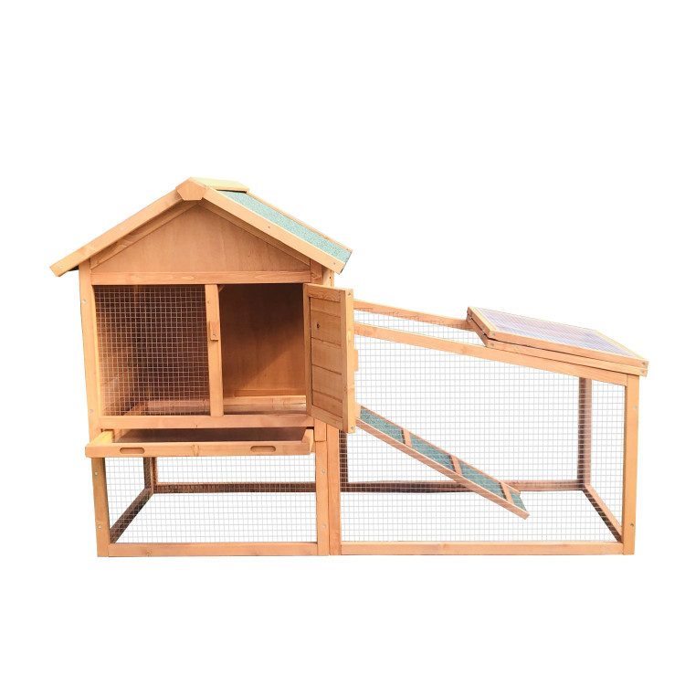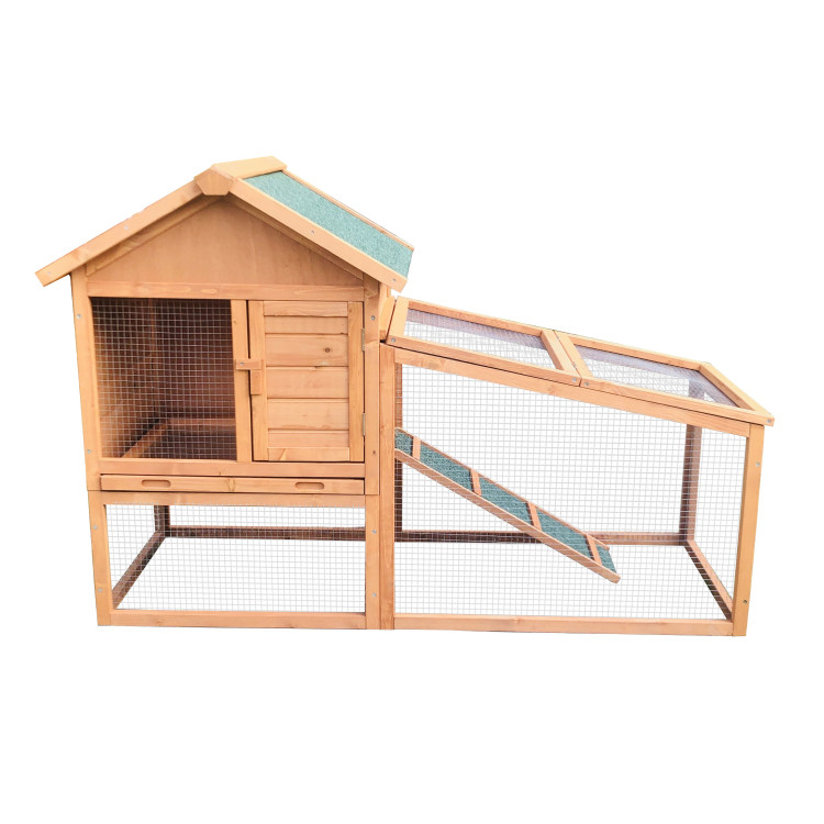 Skládá se ze dvou částí - domečku a výběhu. Obě tyto části jsou propojeny rampou. Montáž je velmi snadná díky dodávanému obrázkovému návodu, zvládne ji opravdu každý.