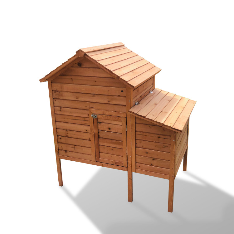 - Odolná konstrukce: kurník je vyroben z masivního smrkového dřeva, ošetřeného ochranným nátěrem