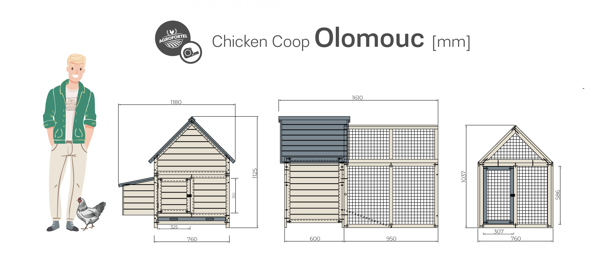 Dřevěný kurník OLOMOUC, 1610x1180x1125 mm