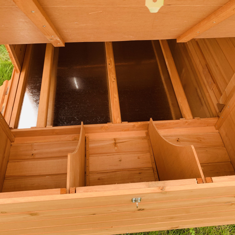 Kurník je vybaven zásuvkou pro snadné vyprazdňování trusu.