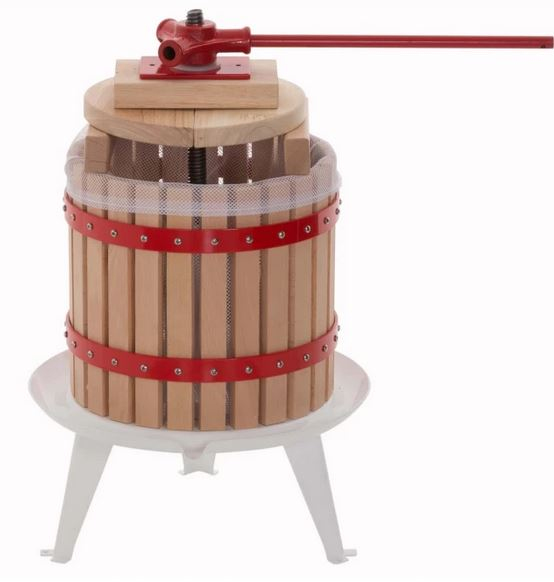 Tento dřevěný lis na ovoce je vyroben z kvalitní kovové konstrukce a velmi tvrdého bukového dřeva.