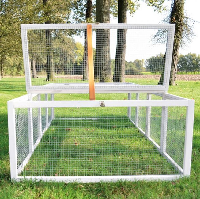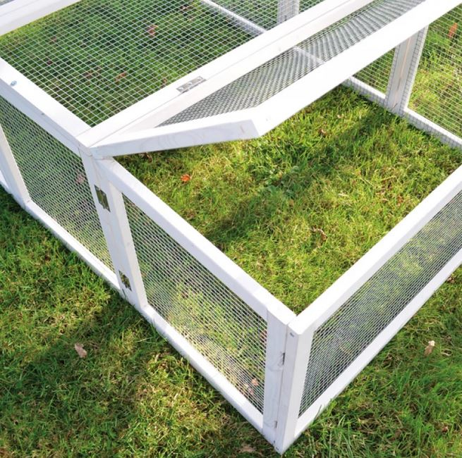 Dřevěný výběh je stabilní a špičkově zpracovaný. Vybrábíme ho ve 2 barvách - v načervenalém tónu dřeva a v bílé barvě. Barvy jsou šetrné k životnímu prostředí a zcela neškodné pro zvířata. Drát má velikost ok 1,2 x 1,2 cm a tloušťku 1,1 mm. Nabízí proto optimální ochranu, aby váš králík nemohl uprchnout.