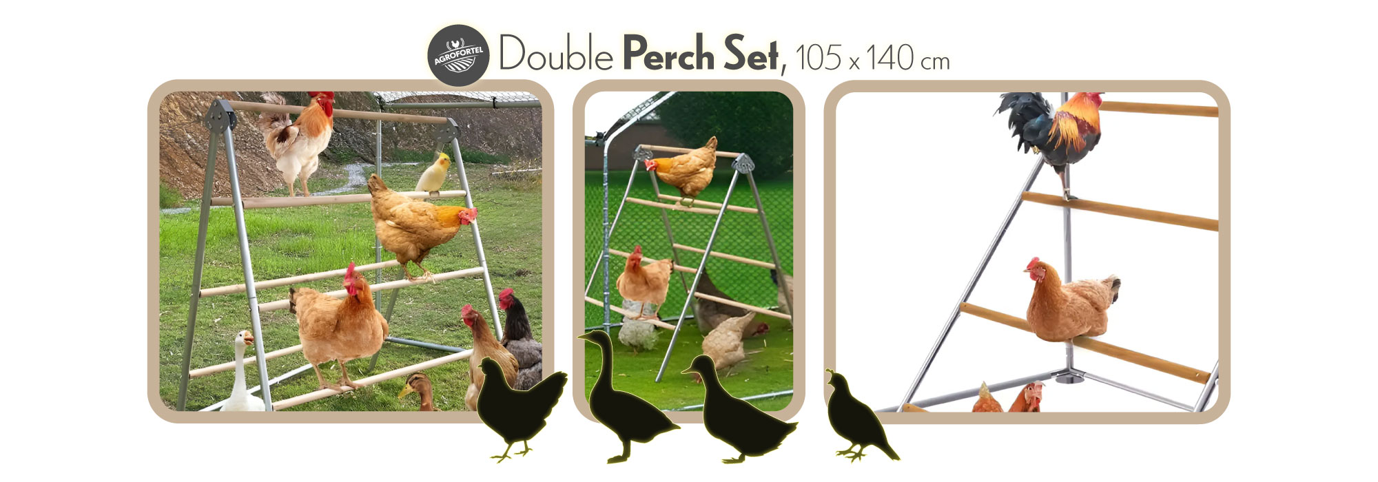 Dvojitý hřad – kompletní set pro slepice, husy, kachny či holuby, 2x 105x140 cm