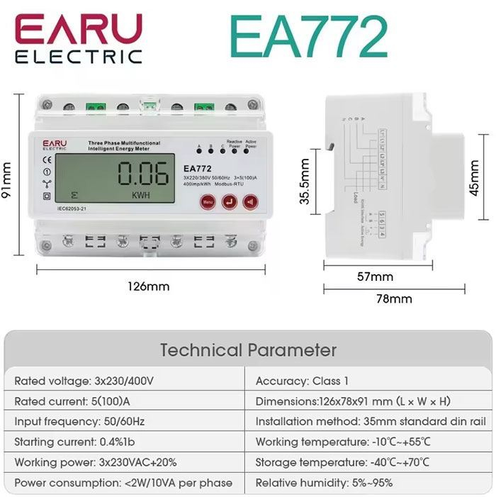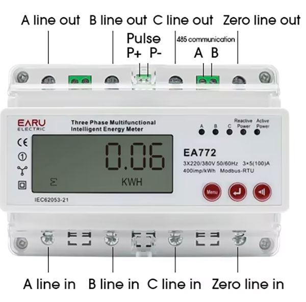 Elektroměr ke kontinuálnímu měření činné spotřeby elektrické energie z třífázového zdroje. Měří spotřebu i přetoky ve stejném poměru, přetoky registruje jako spotřebu. Měří činnou energii střídavého proudu s jmenovitou frekvencí 50/60 Hz a zobrazuje činnou/jalovou energii, třífázové napětí, proud, účiník, frekvenci a další informace.