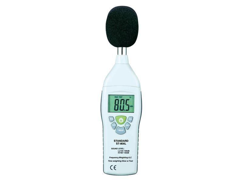Jednoduchý a spolehlivý hlukoměr ST-805L (SL-100) kompaktního provedení. Možnost volby frekvenční charakteristiky A (charakteristika sluchu lidského ucha) nebo C (skutečná hladina hluku). Přístroj byl navržen tak, aby splňoval požadavky bezpečnostních inženýrů, kontrolu kvality zvuku v různých prostředích a byl ohleduplný ke zdravý.