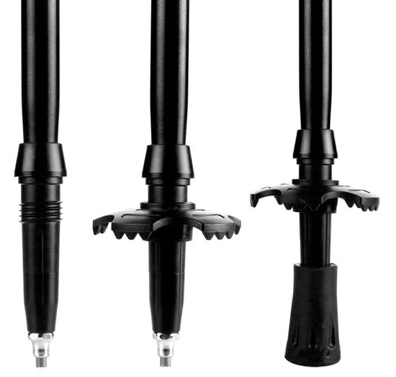 K holím jsou přidány ochranné koncovky hrotu, které chrání opotřebení hrotu při chůzi na tvrdém povrchu (beton, asfalt).