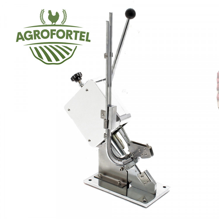 Zařízení stojí na velkém stojanu a jeho použití je velmi jednoduché. Síla tlaku se dá regulovat pomocí otočného kolečka. Klipsovačka je vyrobena z nerezové oceli.