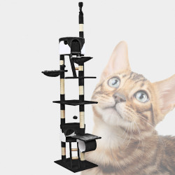 Toto kočičí škrabadlo nabízí několik míst k odpočinku a také možnosti útočiště. S výškou 240 – 260 cm a kombinací několika plošin a jeskyní se tento kočičí strom dokonale hodí do domácností s mnoha kočkami. Jeho výška je variabilní, protože horní sisalový kus lze upravit tak, aby vyhovoval podmínkám vašeho domova, což umožňuje zvýšit stabilitu kočičího stromu jeho sevřením mezi podlahu a strop. Ale i bez toho, základní deska 45 x 60 cm již poskytuje konstrukci bezpečný stojan a zajišťuje, že ji mohou kočky používat bez rizika.