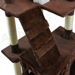Toto kočičí škrabadlo nabízí několik míst k odpočinku a také možnosti útočiště. S výškou 240 – 260 cm a kombinací několika plošin a jeskyní se tento kočičí strom dokonale hodí do domácností s mnoha kočkami. Jeho výška je variabilní, protože horní sisalový kus lze upravit tak, aby vyhovoval podmínkám vašeho domova, což umožňuje zvýšit stabilitu kočičího stromu jeho sevřením mezi podlahu a strop. Ale i bez toho, základní deska 45 x 60 cm již poskytuje konstrukci bezpečný stojan a zajišťuje, že ji mohou kočky používat bez rizika.