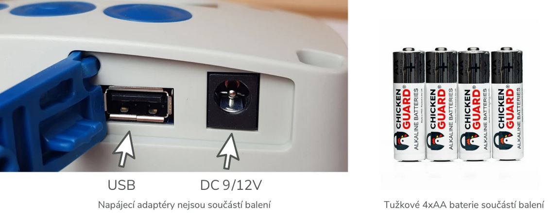 Více možností napájení – baterie, USB i DC 9/12 V, flexibilní instalace kdekoli.