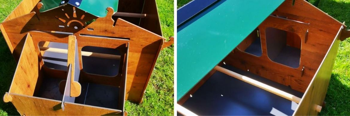 Kurník pro slepice je vybaven třemi hřady pro noční odpočinek slepic. Součástí kurníku jsou také dvě vnější kukaně, v kterých budou mít slepice dostatek prostoru a klidu pro snášení vajec. Získávání vajíček přitom bude velice jednoduché, jelikož k jejich vyzvednutí stačí pouze zvednout střechu snáškových hnízd. Součástí balení jsou bezpečnostní dvířka značky Chicken Guard, na které můžete v případě zájmu snadno připojit automatické otevírání kurníku (k zakoupení zde). Automatické otevírání a zavírání kurníku není součástí balení!