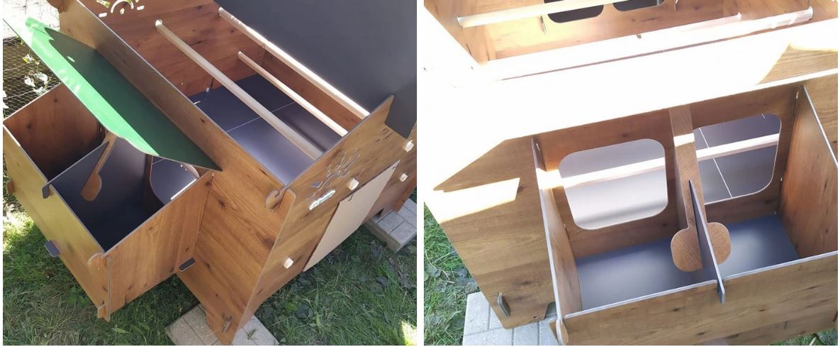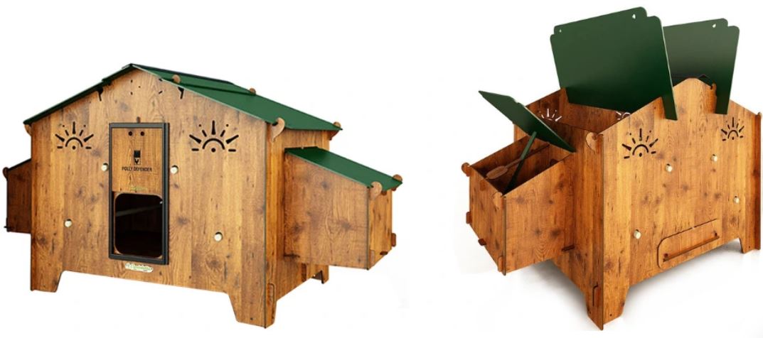 Kurník pro slepice je vybaven čtyřmi hřady pro noční odpočinek slepic. Součástí kurníku jsou také čtyři vnější kukaně, v kterých budou mít slepice dostatek prostoru a klidu pro snášení vajec. Získávání vajíček přitom bude velice jednoduché, jelikož k jejich vyzvednutí stačí pouze zvednout střechu snáškových hnízd. Součástí balení jsou bezpečnostní dvířka Polly Defender, na které můžete v případě zájmu snadno připojit automatické otevírání kurníku. Automatické otevírání a zavírání kurníku není součástí balení!