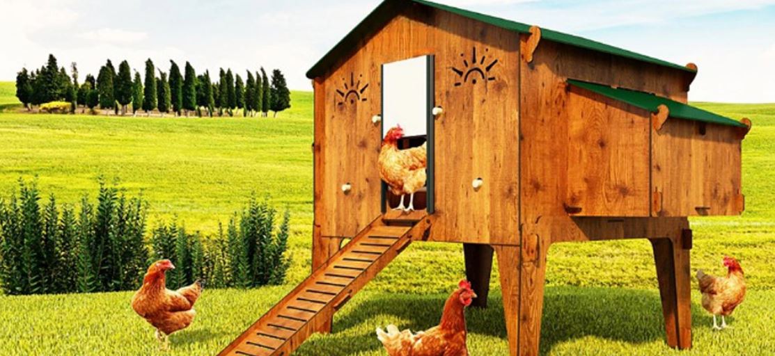 Vyvýšený design – ochrana před deštěm, sluncem a predátory, prostor pod kurníkem na krmivo a napáječky.