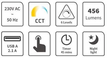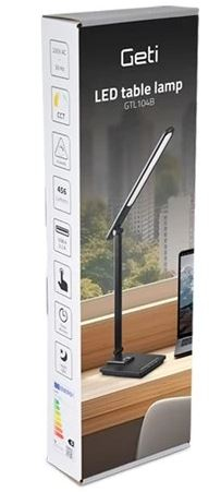 Na tento výrobek poskytujeme 3 roky záruku. Stolní svítidlo GETI GTL104B je ideálním osvětlením do vašich kanceláří, pracoven, dětských pokoju a všude tam, kde je potřeba spolehlivé a efektivní osvětlení pracovního prostoru. Lampa disponuje možností nastavení teploty světla - bílá teplá, přírodní a studená barva a 5 stupni intenzity světla. USB A port vám umožní nabíjení telefonů nebo jiných zařízení.