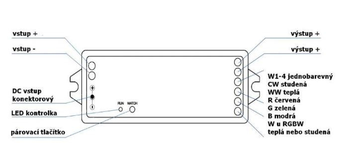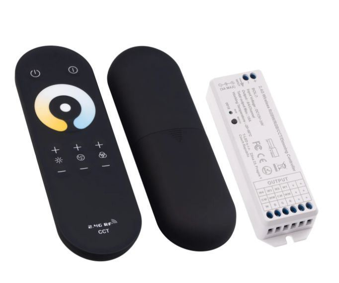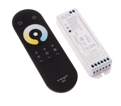 Tento jednokanálový RF stmívač a vypínač umožňuje pohodlné dálkové ovládání i ovládání barvy a jasu CCT LED produktů na 12–24V DC jako jsou CCT LED pásky, CCT LED moduly a další. Díky radiofrekvenčnítechnologii není nutná přímá viditelnost mezi ovladačem a přijímačem, což umožňuje skrytí přijímače za zdí, sádrokartonem nebo ve skříni.