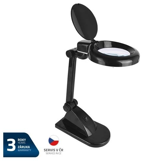 Stolní lupa je ideální pomocník v domácnostech, dílnách, kancelářích a mnoha dalších pracovištích. Výborně se hodí pro práci s elektronikou a ke kontrolní činnosti. Polohovací stojan umožňuje přesné a pohodlné nastavení lupy. Díky úspornému LED přisvícení lze s lupou pracovat i v nevyhovujících světelných podmínkách, nebo ji využít jako stolní lampu. K dispozici je i malá vložená čočka s 12 dioptriemi, kterou lze použít ke zvětšování velmi malých dílů , nápisů (např.zjišťování typu součástky a pod.).
