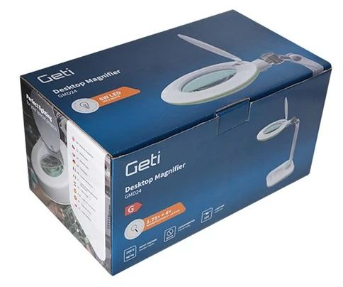 Stolní lupa GET GDM24 je ideální pomocník v domácnostech, dílnách, kancelářích a mnoha dalších pracovištích. Výborně se hodí pro práci s elektronikou a ke kontrolní činnosti. Polohovací stojan umožňuje přesné a pohodlné nastavení lupy. Díky úspornému LED přisvícení lze s lupou pracovat i v nevyhovujících světelných podmínkách, nebo ji využít jako stolní lampu. K dispozici je i malá vložená čočka s 12 dioptriemi, kterou lze použít ke zvětšování velmi malých dílů , nápisů (např.zjišťování typu součástky a pod.).