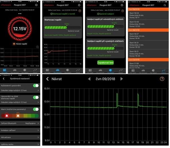 Monitorovací zařízení autobaterie 35953 s přenosem informací pomocí Bluetooth do mobilního zařízení.