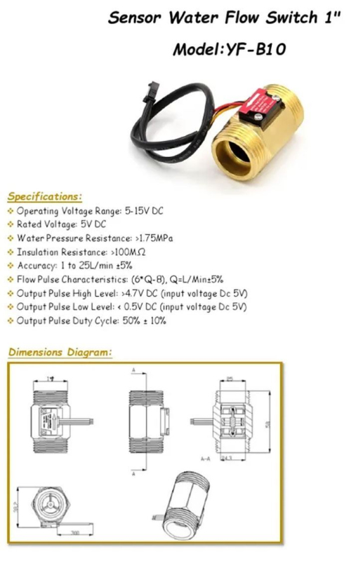 Mosazný průtokoměr YF-B10 1" 2-50L/min