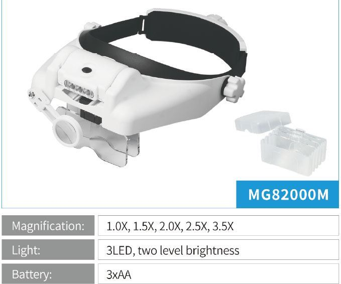 Náhlavní lupa s osvětlením a výměnnými čočkami MG82000M