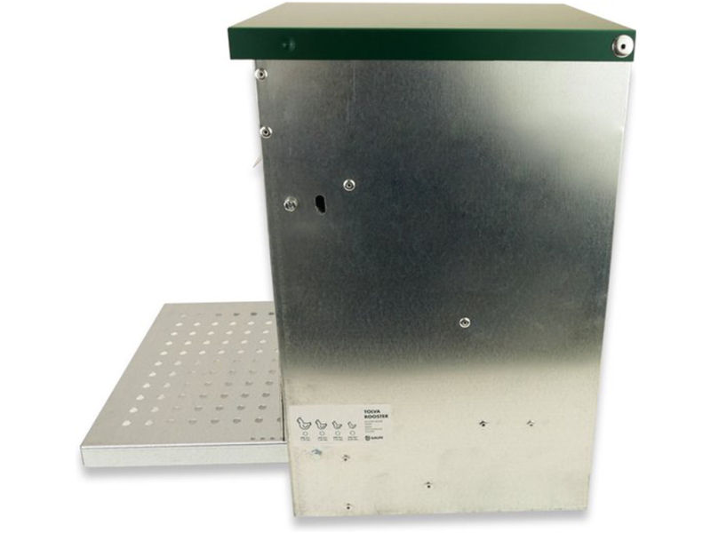 S víkem a nášlapnou plošinou, 20 KG zásobníkem, s okénkem, do 50 slepic, rozměry: 450 x 470 x 420 mm.