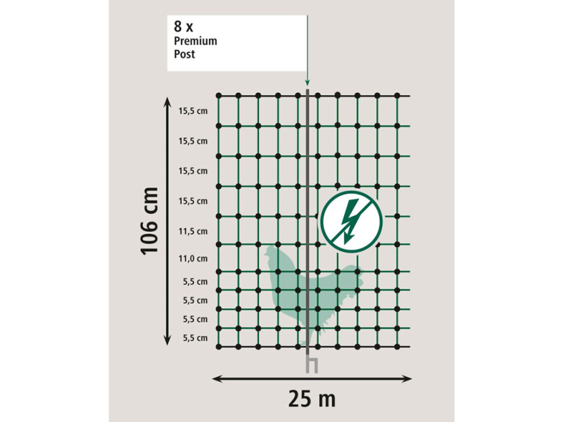 Díky zvláště malé velikosti ok ve spodní části, je tato extra pevná síť vhodná zejména pro kuřata nebo jehňata.