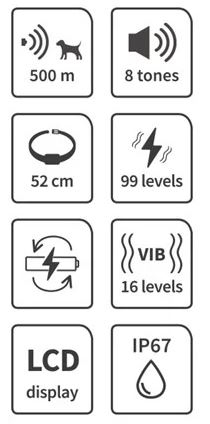 - Dlouhá výdrž baterie: Dobíjecí baterie s dlouhou výdrží zajistí, že obojek bude připraven k použití po dlouhou dobu.