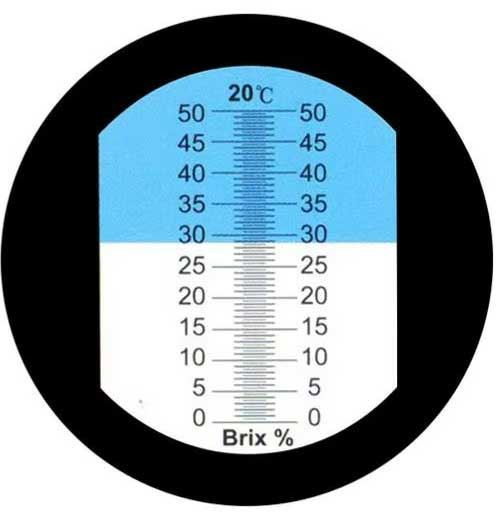 Refraktometr se stupnicí Brix je určen především pro měření obsahu cukru v ovocných koncentrátech (džusech, sirupech, džemech, kondenzovaném mléku apod.) v rozsahu 0 – 50 %.