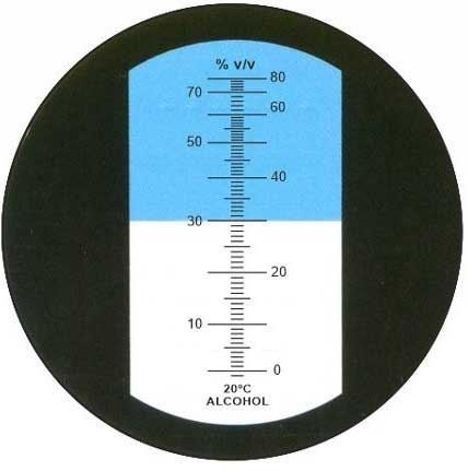 Refraktometr slouží k určení obsahu alkoholu (v objemových procentech % VOL) v různých pálenkách z ovoce a destilátů, jako jsou např. whisky, bourbon, whiskey, brandy, vodka, gin, rum, tequila apod.