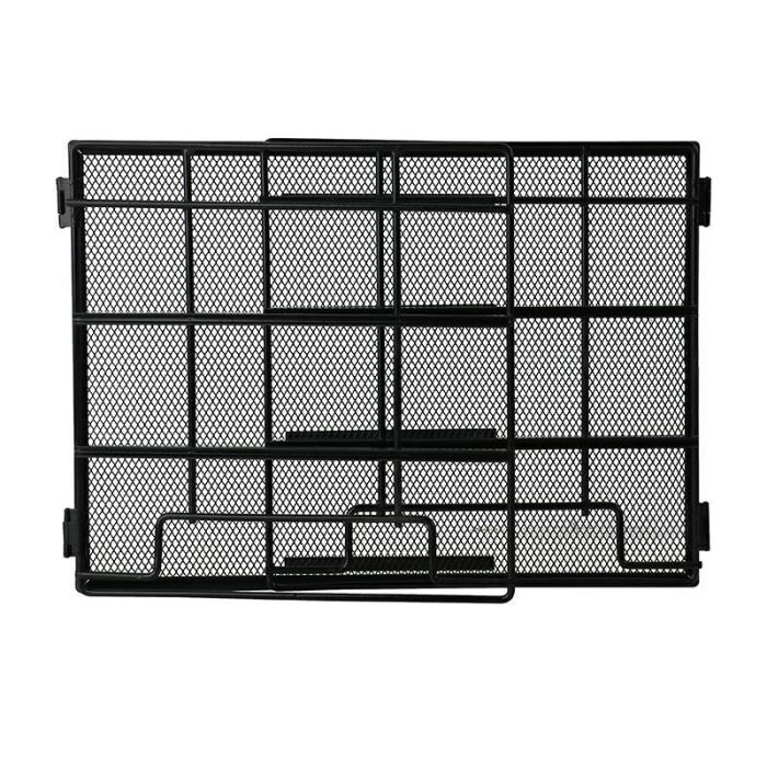 Pevný a odolný – vyroben z kovové sítě, pokrytý černým ochranným lakem.