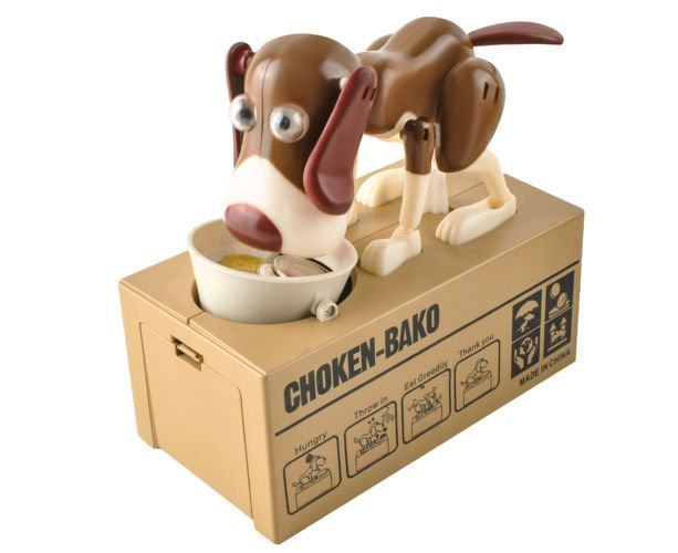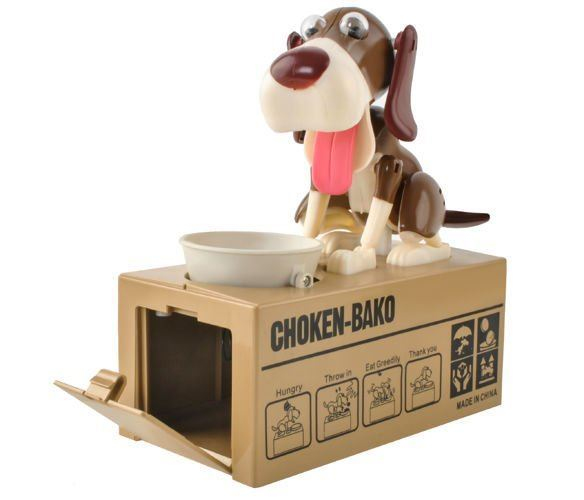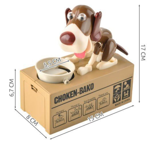 Veselá pokladnička v podobě pejska sedícího u své misky se bude líbit především dětem Pokladnička je vybavena speciálním systémem, který dokáže rozpoznat, že byla do misky vložena mince. V ten okamžik pejsek oživne a minci vloženou na misku doslova zhltne. Díky této pokladničce se děti lépe naučí pracovat s penězi a šetřit si je. Psí pokladničku doporučujeme jako pěkný a veselý dárek pro holky i kluky.