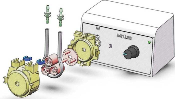 Peristaltické čerpadlo funguje na principu posouvání tekutiny v hadičce formou postupného mačkání odvalováním válečků ve směru proudu. Nemůže tedy kontaminovat čerpanou tekutinu.