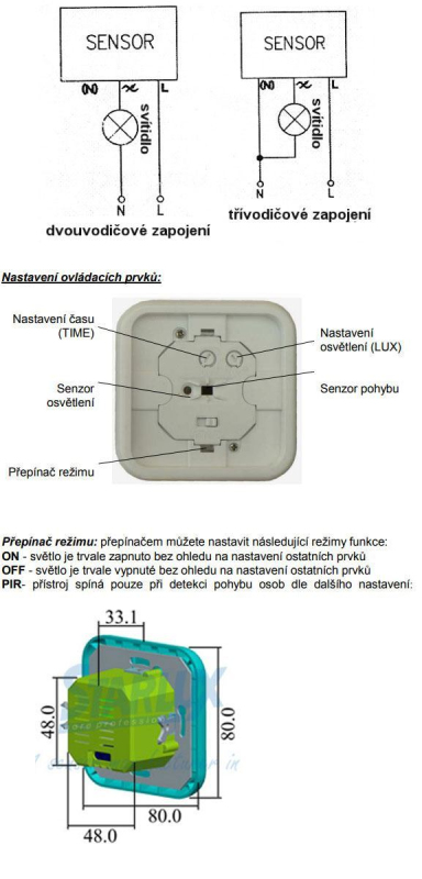 PIR čidlo ST32 místo vypínače - dvou i třívodičové