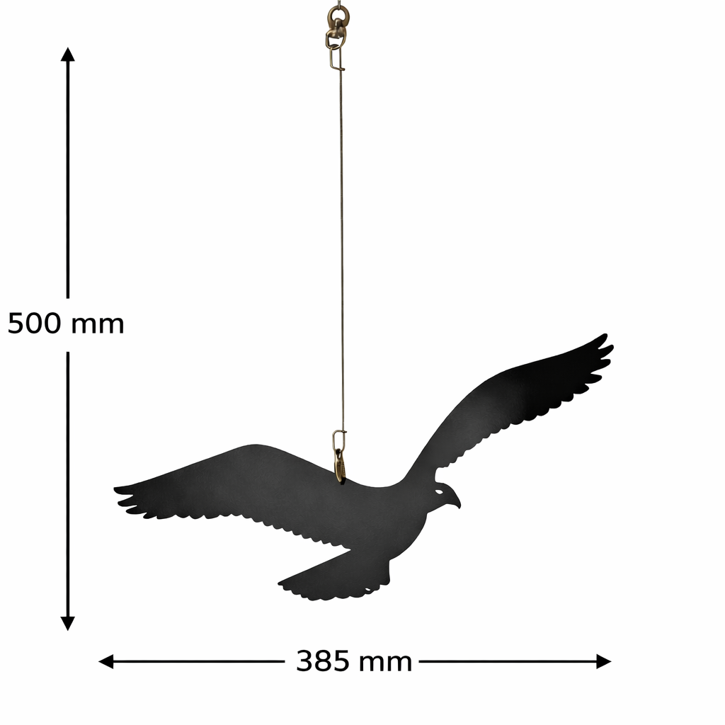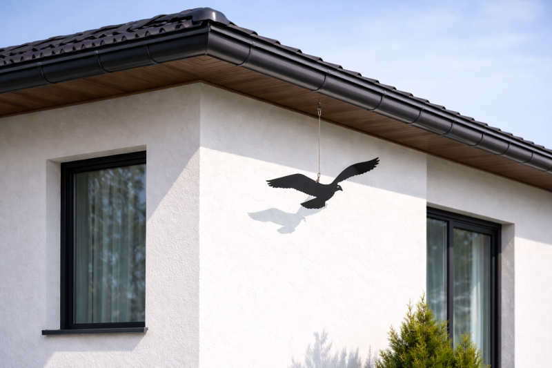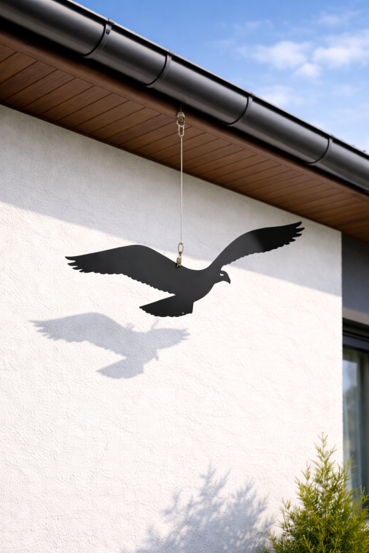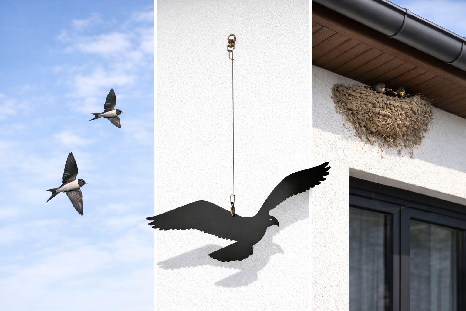 Plašič vytváří pohybující se siluetu dravce s rozpětím 385 mm, která přirozeně odrazuje jiřičky při hledání místa pro stavbu hnízda.