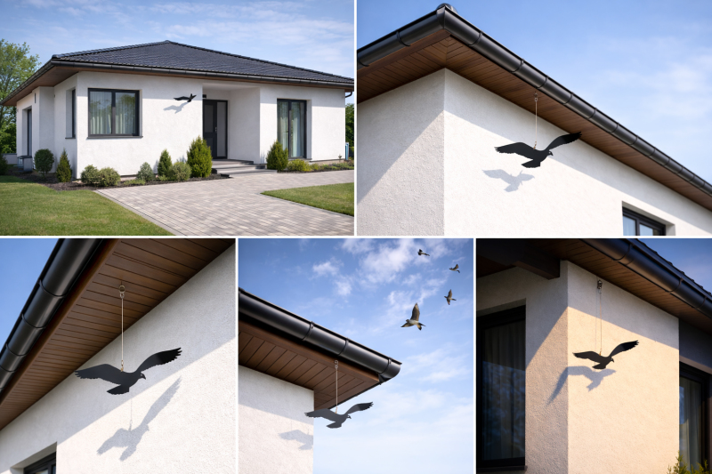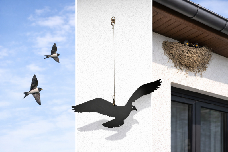 Instalace na okapy nebo podbití střechy nebo v oblastí oken pomáhá omezit hnízdění vlaštovek na domech, pergolách nebo balkonech.