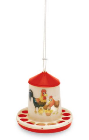 Krmítko pro kuřata, slepice, krůty, husy, kachny a další drůbež z odolného plastu - polypropylen, který se snadno čistí.