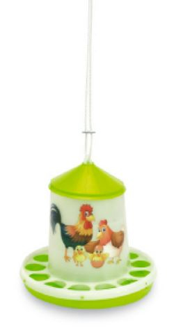 Krmítko pro kuřata, slepice, krůty, husy, kachny a další drůbež z odolného plastu - polypropylen, který se snadno čistí.